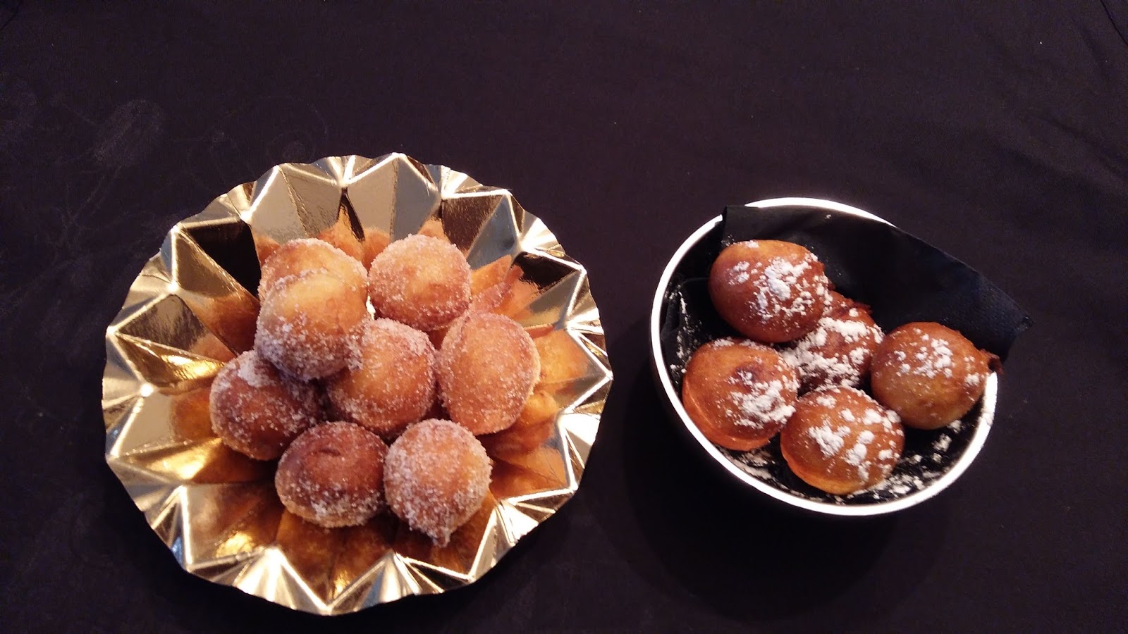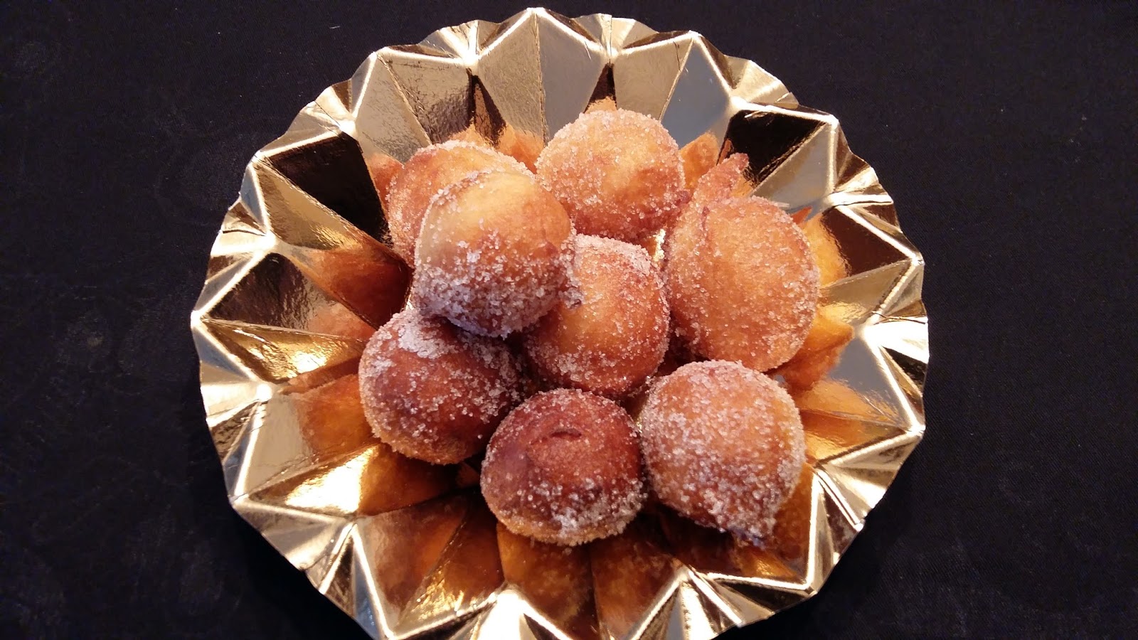 Freir en abundante aceite, podeis coger las porciones de masa con un dispensador de bolas de helado, pero si no teneis lo podemos hacer con dos cucharitas y dar forma de bola. Freir a temperadura media para que se cuezan correctamente. Cuando esten fritos ya se pueden pasar a una fuente para añadir el azúcar.