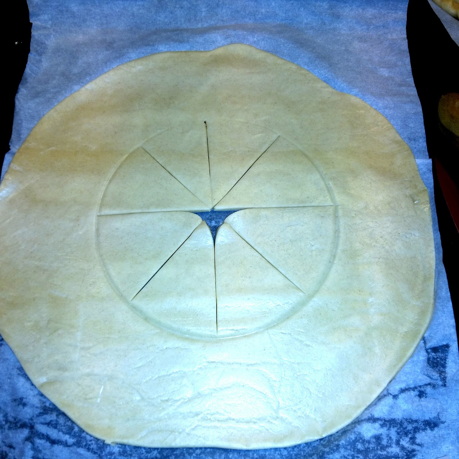 Vamos con la masa, la estiramos us poco y realizamos unos cortes en el centro para poder realizar la corona, tal como muestro en la foto.