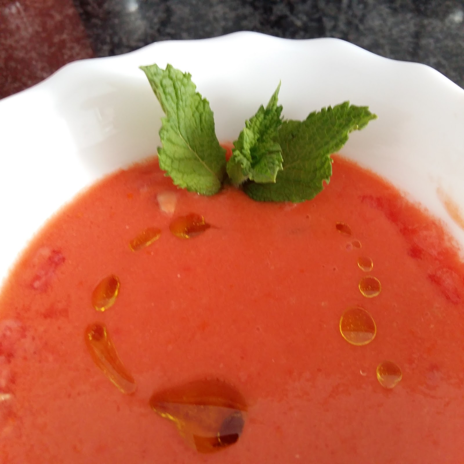 Hoy de nuevo un entrante refrescante, un gazpacho de sandía.