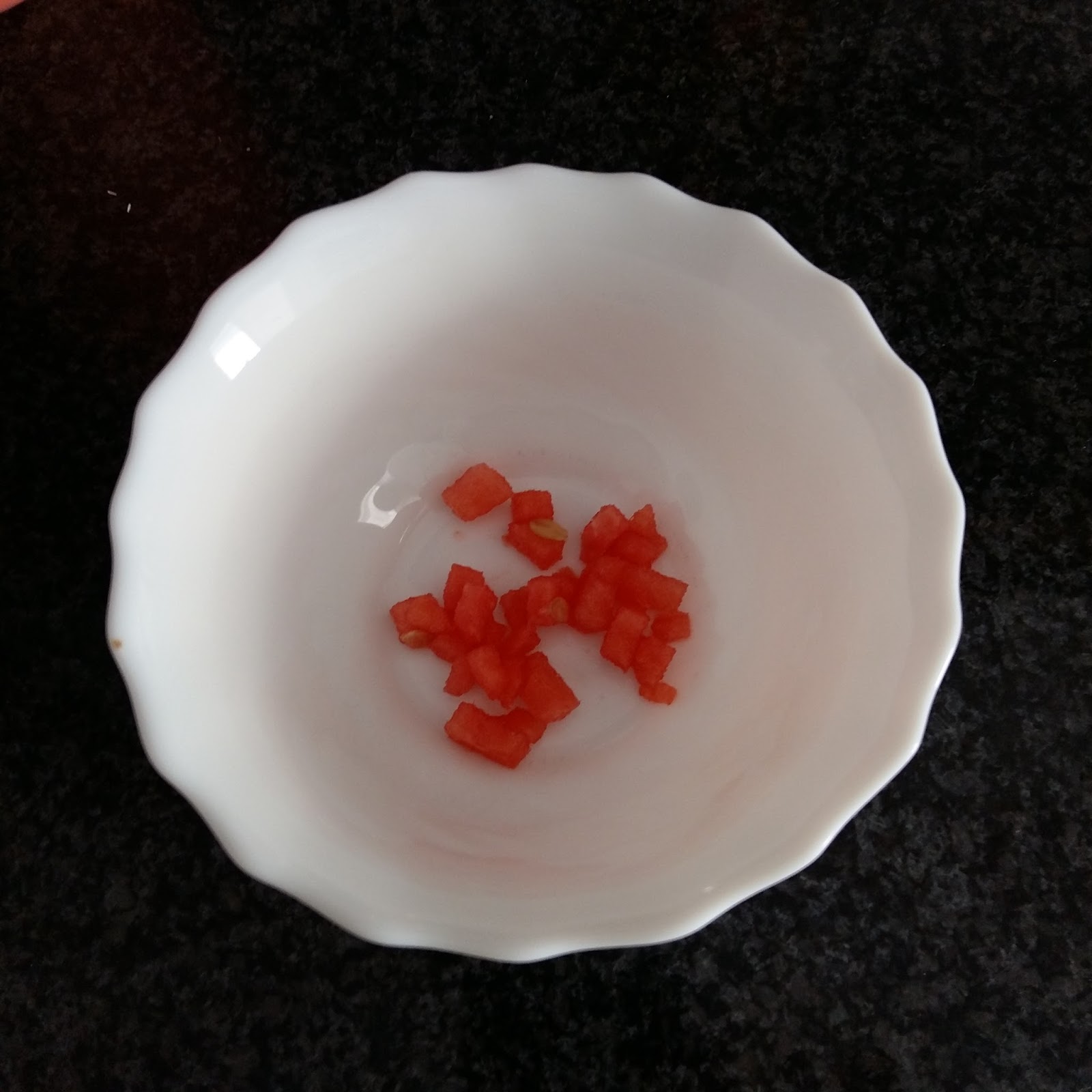 Y ya puedes servir, con unos taquitos de sandía, con unas gotas de aceite de oliva virgen y con lo que te apetezca poner de decoración, unas semillas de sésamo, unas virutas de jamón serrano.