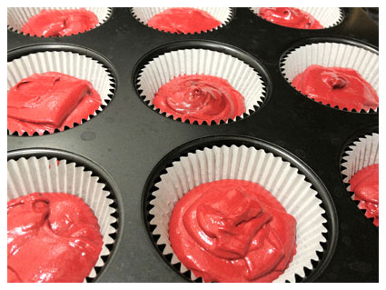 Ya tenemos la masa preparada, sólo nos queda pasarla a las cápsulas de las magdalenas y pasarlas al frigorífico durante 1/2 hora.