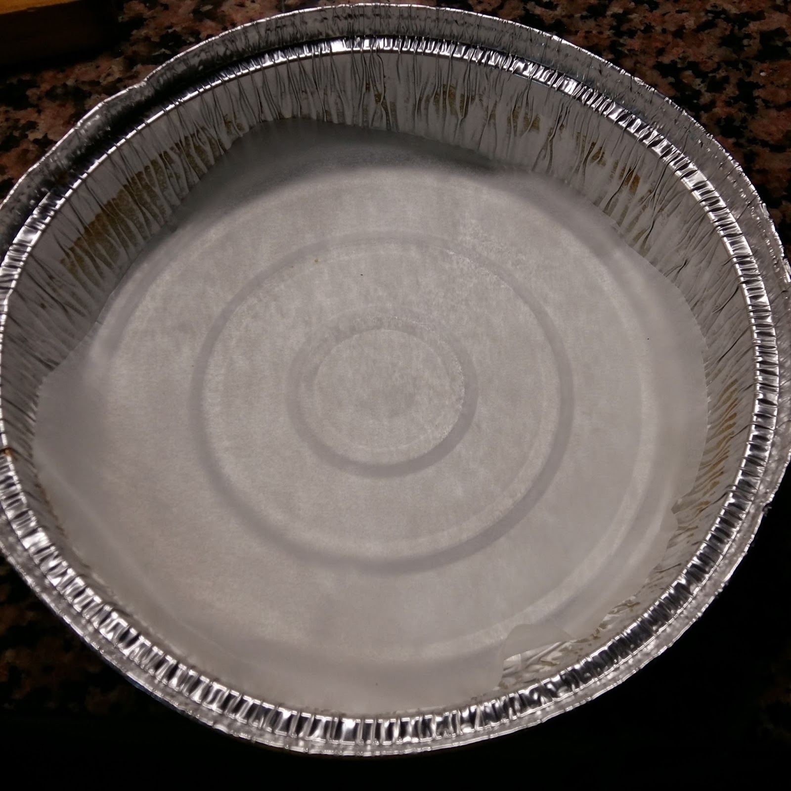 Preparamos el molde a utilizar, un molde redondo de aluminio de 15 cm. al que habremos forrado con papel de hornear, tanto en el fondo como los laterales, para facilitar su desmoldeado. Precalentamos el horno a 180º calor arriba y abajo, sin ventillador.