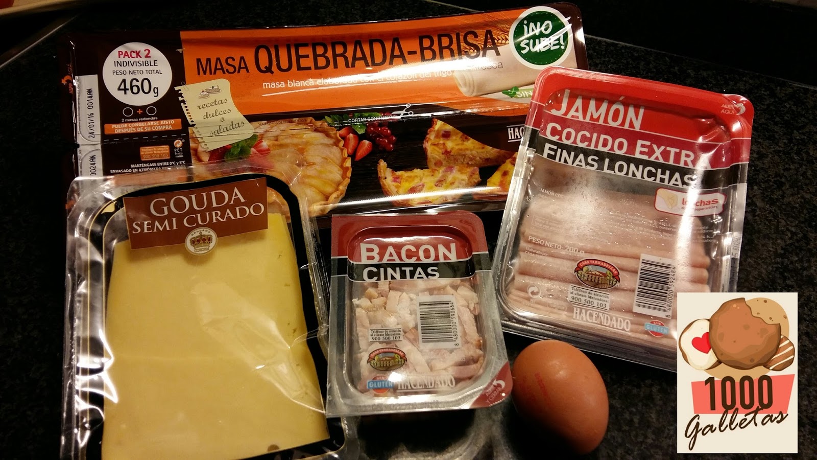 Repartimos el bacon, el jamón dulce y el queso a trocitos pequeños sobre la lámina.
